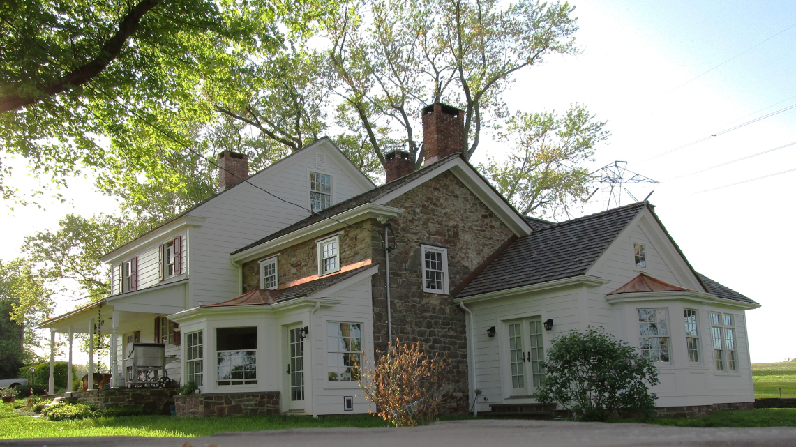 This Pittstown, NJ, historic farmhouse has been thoughtfully expanded to feature a first-floor den, a new exterior-accessible bathroom, and a practical mudroom, catering to the homeowners’ needs as animal lovers and gardeners. The additions, located at both the front and rear front of the house, also resolves a previous issue by providing interior access to the basement, enhancing the home’s functionality and comfort.